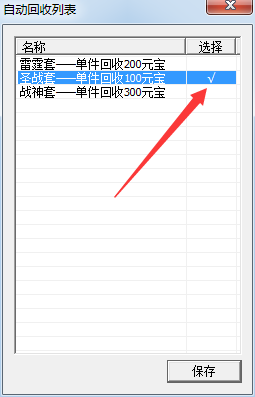 勾选需要回收的套装,保存即可