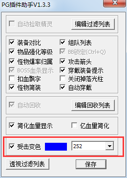 玩家可在pg助手上选择被攻击时,攻击玩家改变颜色