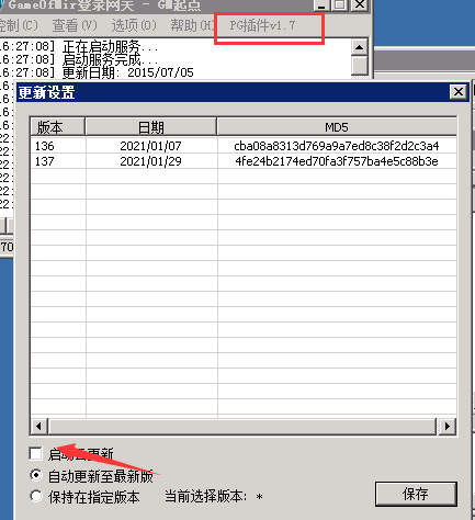 注:使用1.7版本防扫号网关需要关闭云更新