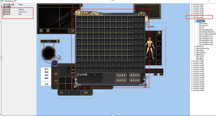 鼠标选择其中一个按钮,比如点击DItemBagButton1,然后在左边的窗口,双击图片,就可以设置素材了**