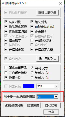 - 设置自动捡物范围