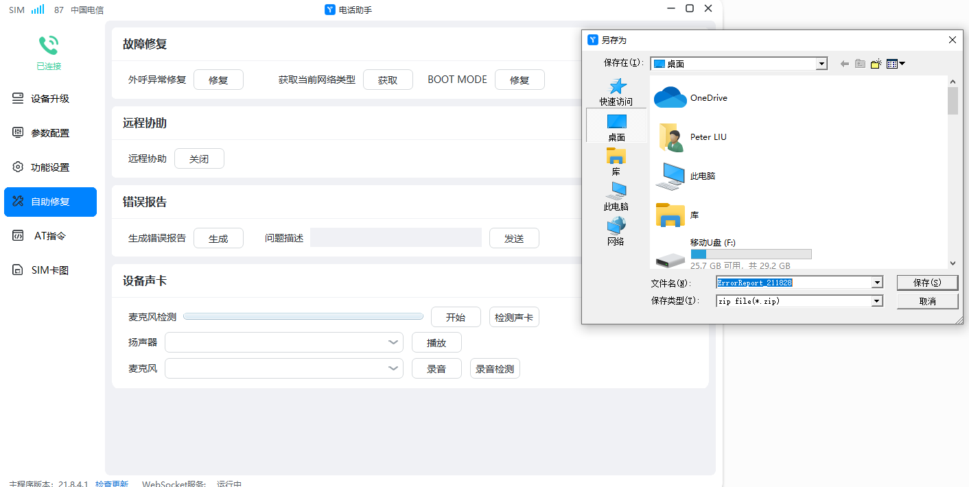 保存后的错误报告文件发送给支持人员分析。