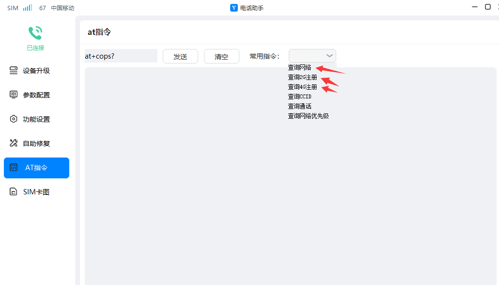 +QCFG: "nwscanmode",1 (返回结果为只搜索移动2G-GSM网络)