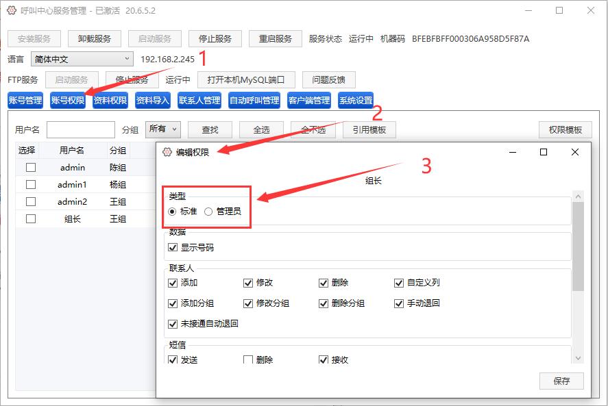 第四步,权限类型,分两种(标准、管理员),管理员给组长设置即可,员工直接设置标准即可,图示3