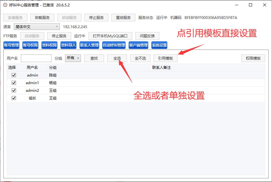 第五步,可以引用模板先设置好权限,图示4
