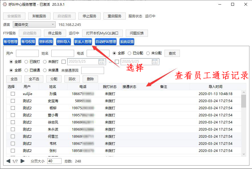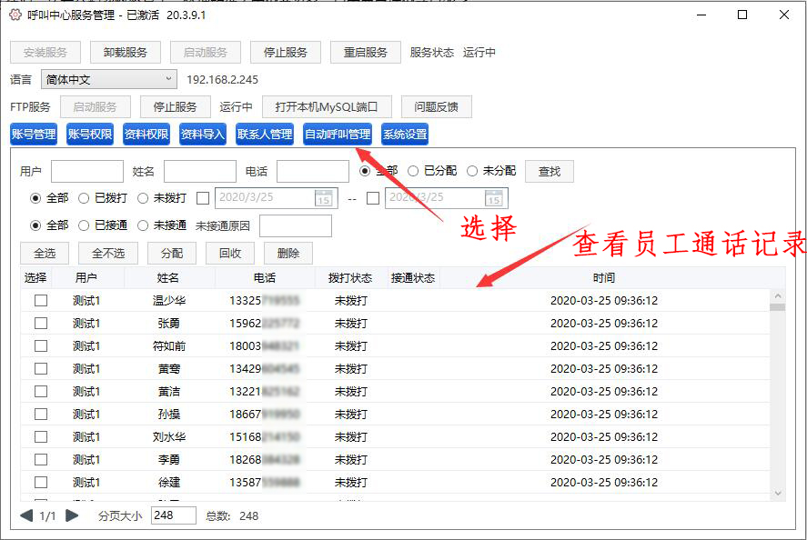 第四步,选择"自动呼叫管理",下面就是您在自动呼叫号码分配的通话记录,图示。