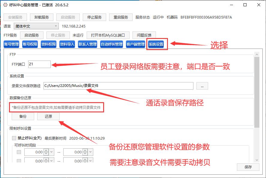 第五步,选择"系统设置",下面有FTP端口、系统设置、数据备份还原。