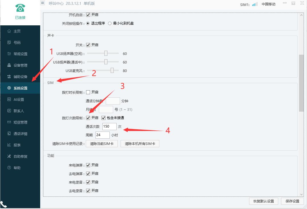 如何设置一天拨打几次电话换卡,具体操作步骤如下: