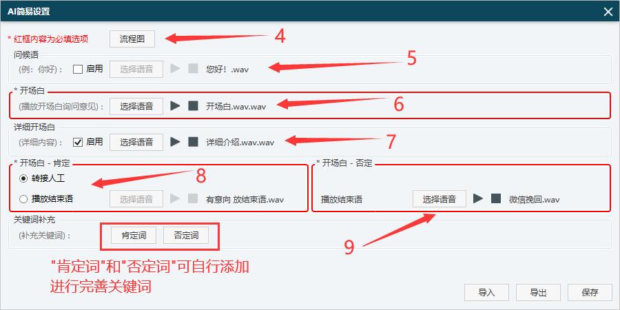 第七步,开场白 这个是必须要添加的,让客户知道你是做什么的,导入您的音频,图示 6