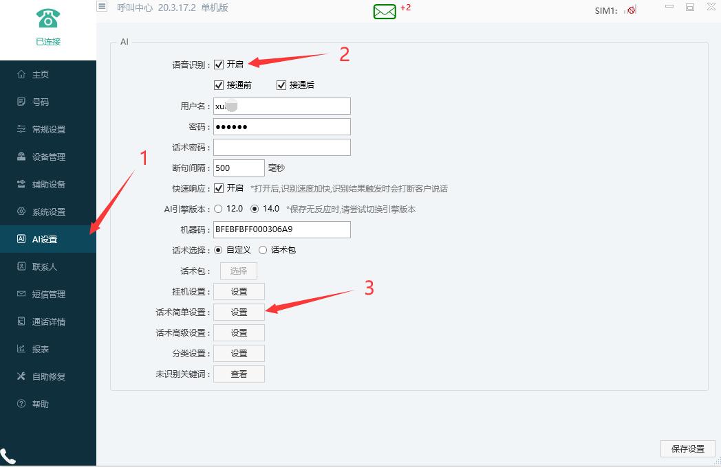 第四步,设置简单话术,找到话机简单设置 点击"设置"将会出现弹窗,图示 3