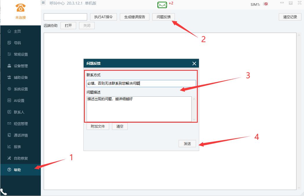第四步,点开后出现弹窗,输入您的联系方式(**必需填否则无法联系您解决问题**)和问题描述(**越详细越好**),图示3