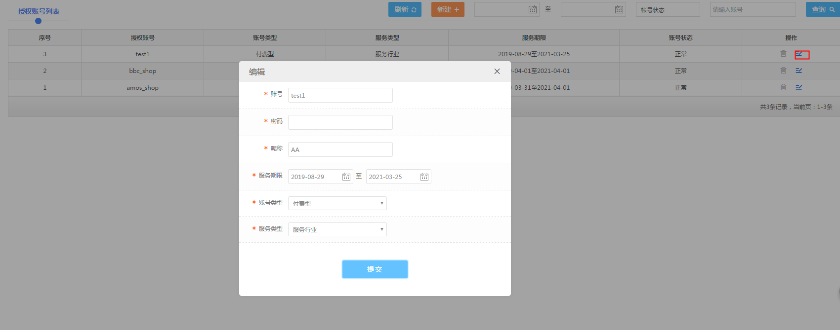 如有需要对授权账号进行删除或者修改的操作,如图所示: