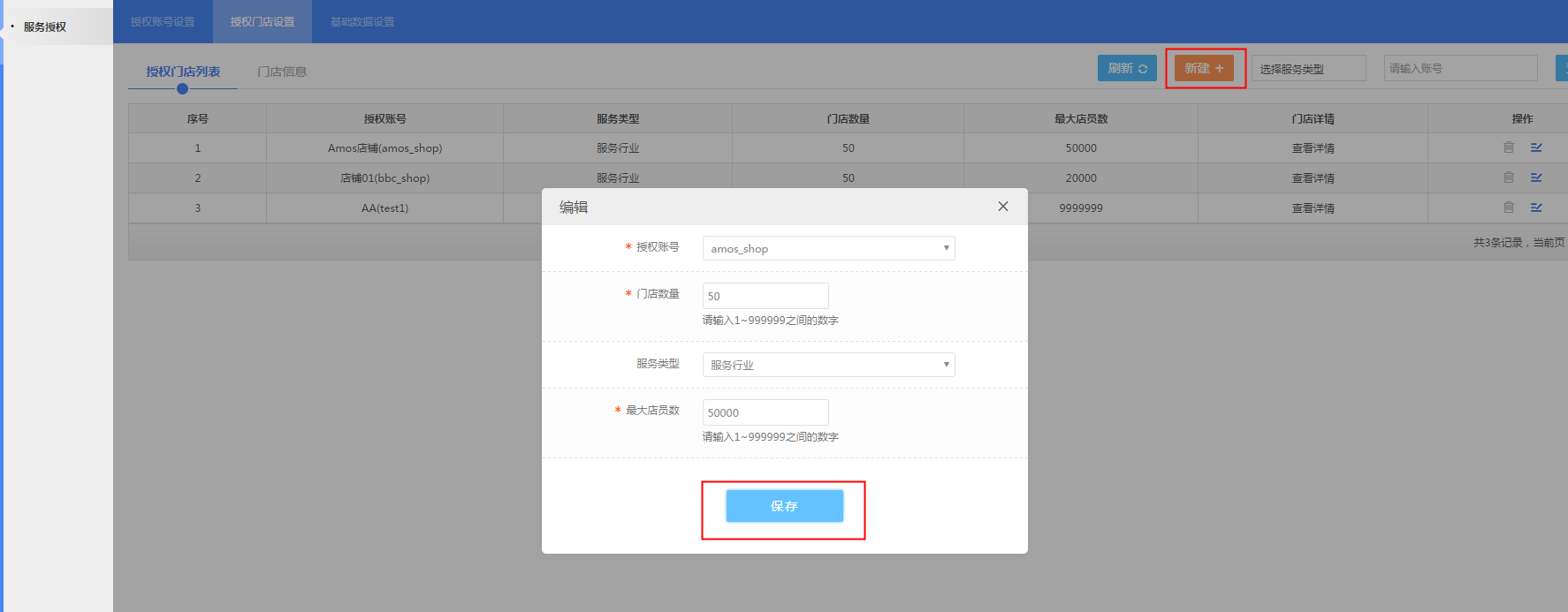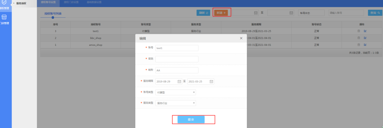 1.如果已经存在授权账号,则去授权管理--服务授权--授权门店设置--授权门店列表,对授权账号设置店铺名称;