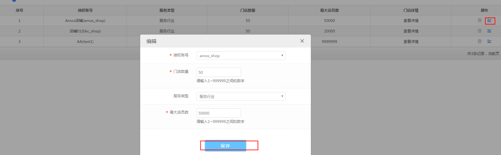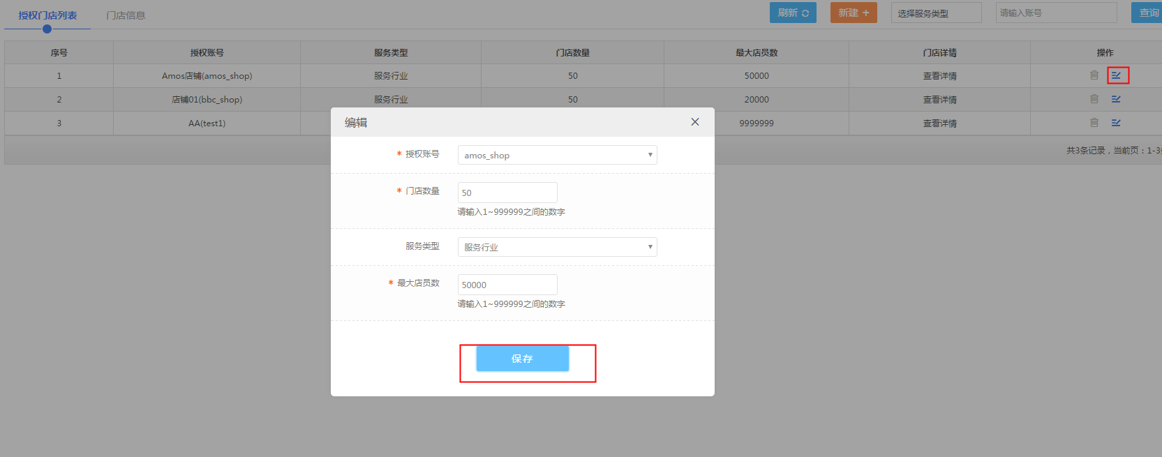 如对授权的门店不满意可选择修改或删除,如图所示: