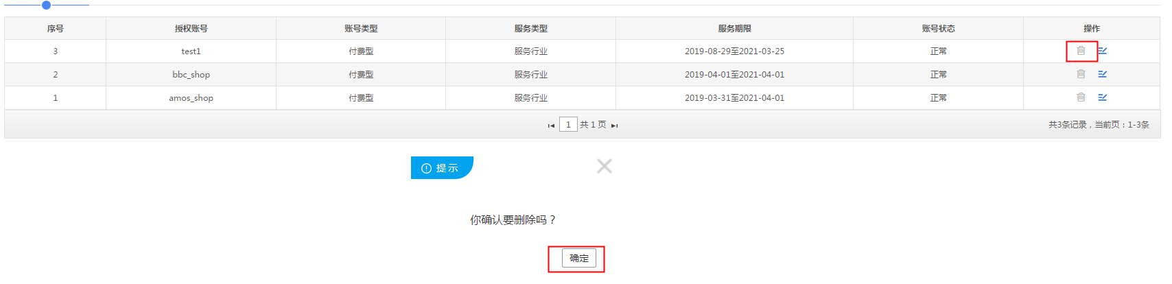 点击删除按钮,会弹出提示,点击确定,则删除成功;