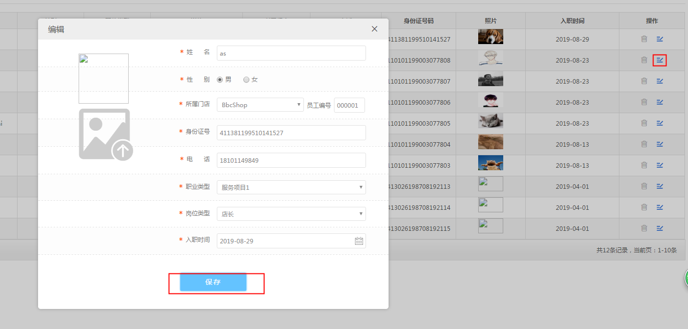 1.2如果要对店员的身份证以及电话进行修改,则点击修改: