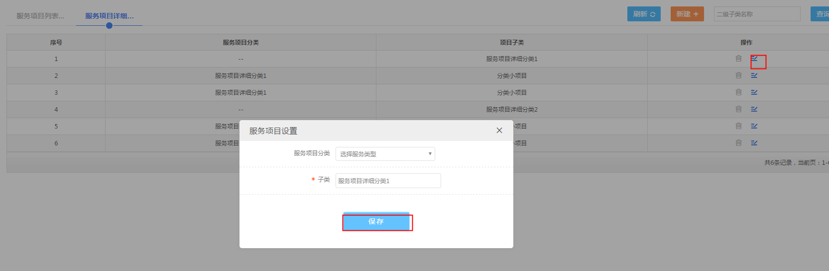 点击修改操作,输入所要修改的子类名称,点击保存,修改成功;