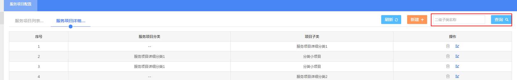 在输入框内填写所要搜索的二级子类名称,点击查询,则会出来相对应的内容;