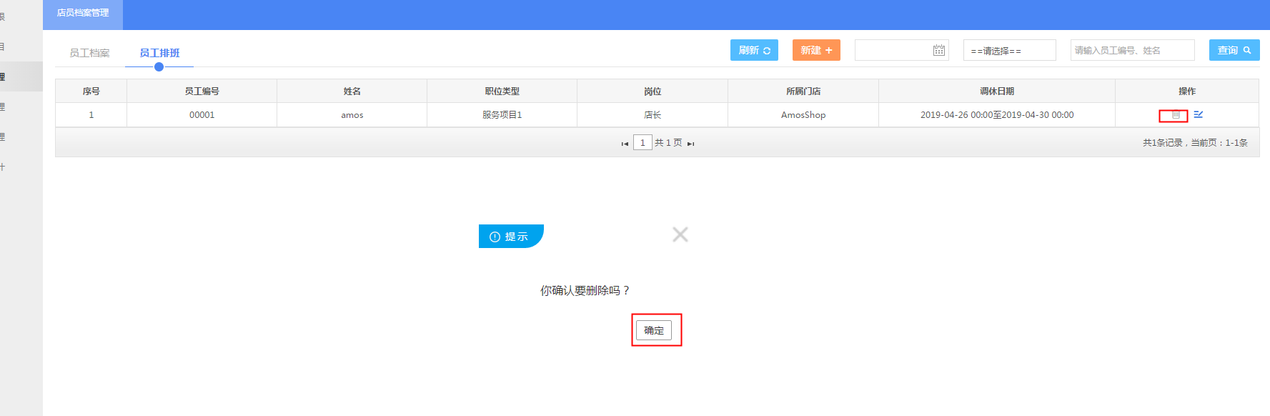 点击删除按钮,会弹出提示,点击确定,则删除成功;