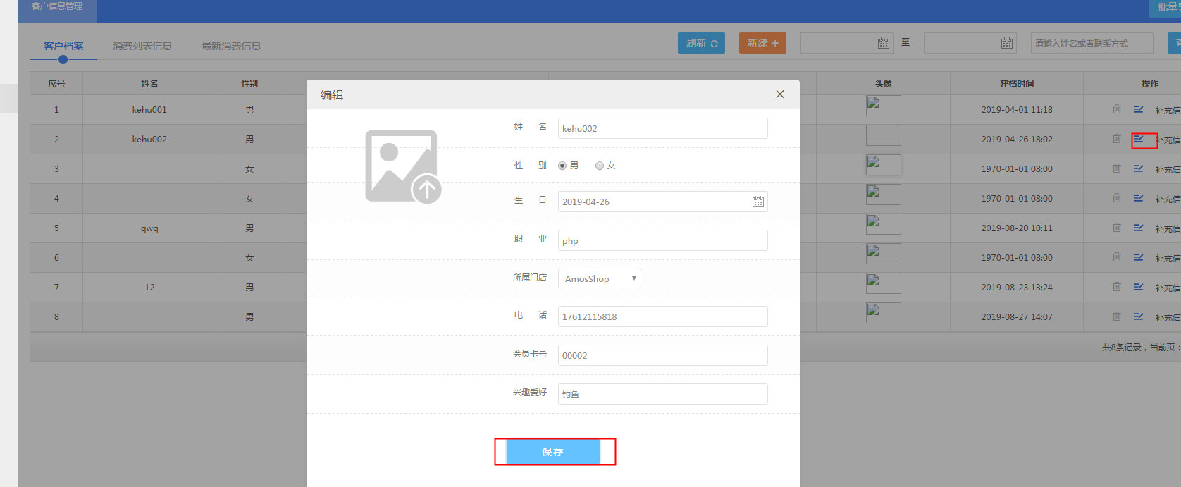 点击修改客户信息,将页面内容填写完整,点击保存,修改成功;