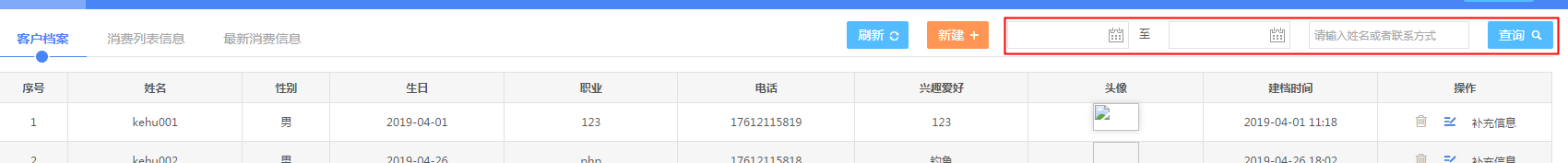 将客户信息填入输入框内,点击查询,即可展现出相对应的信息;