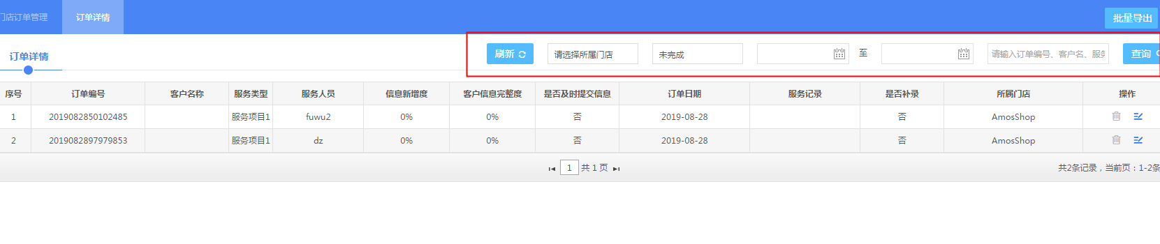 1.4点击批量导出,将订单详细信息以excel形式导出;