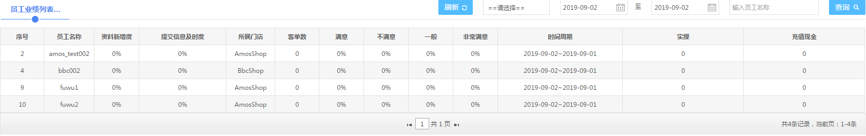 1.2点击门店管理--数据统计--员工业绩统计;