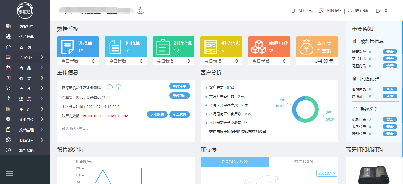 票证通是一款集食品安全管理、追溯管理、进销存管理、生产过程管理、档案管理、组织架构管理等多功能于一体的在线管理软件,无需安装与运维,在线即可注册和使用。