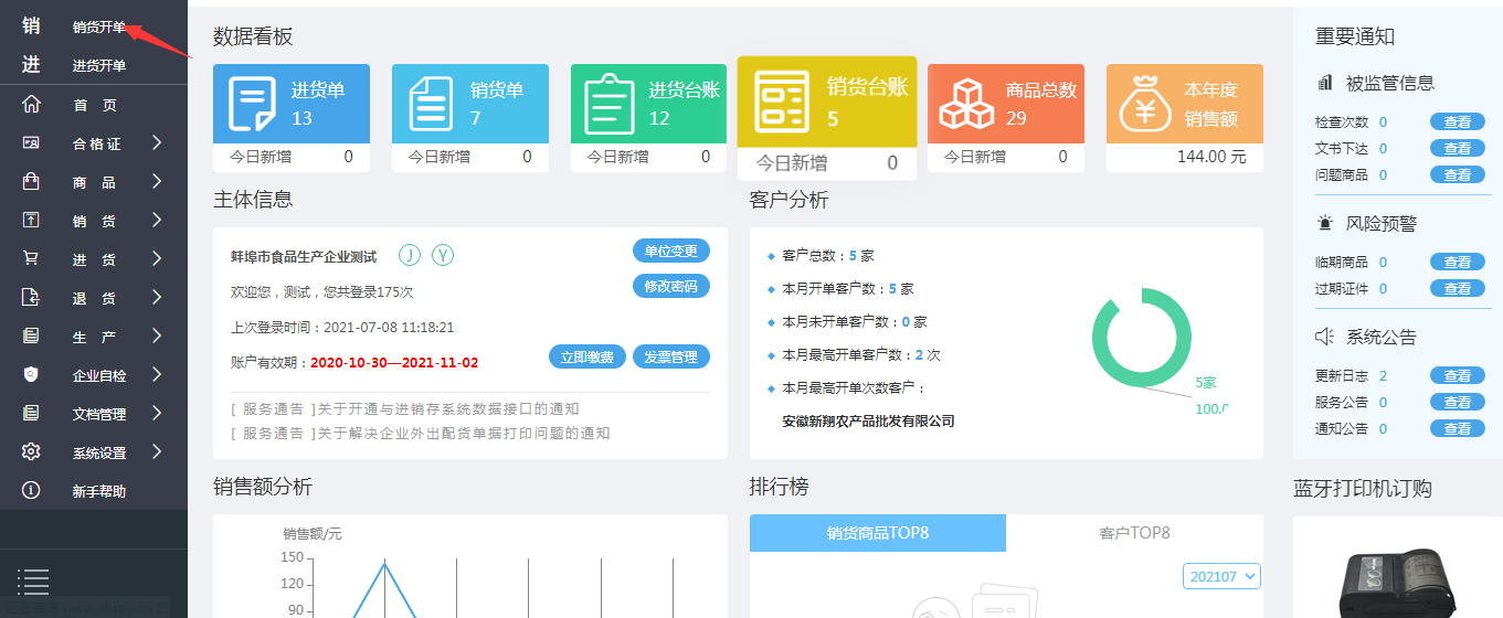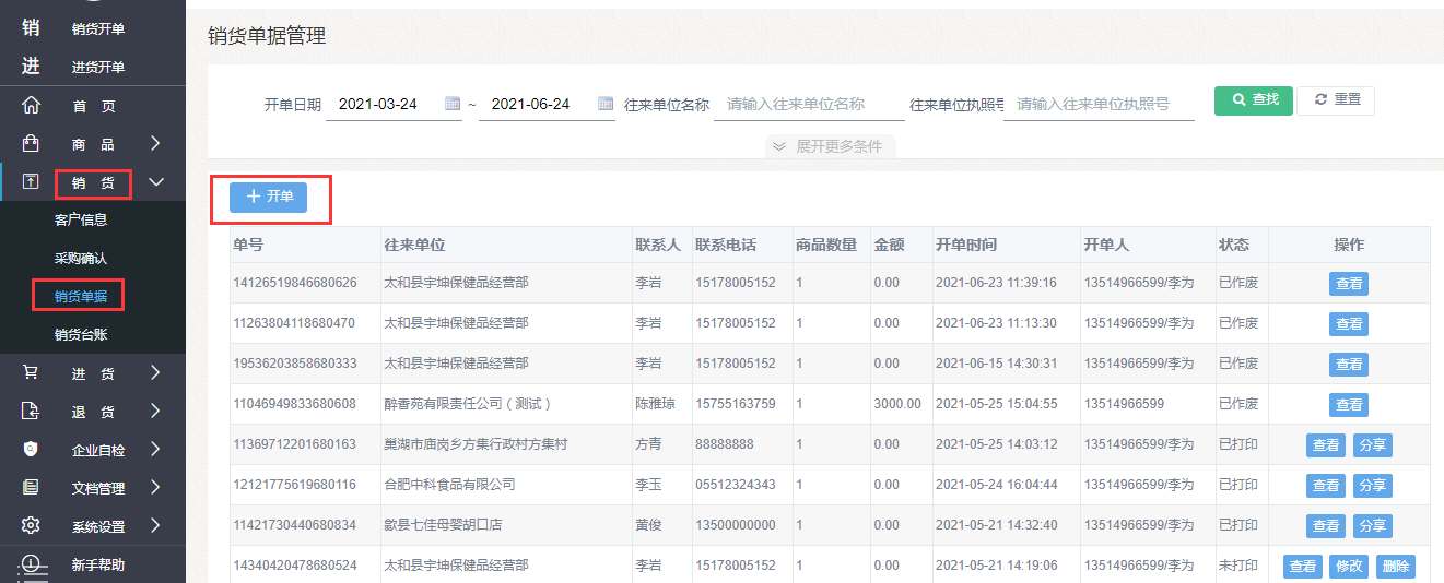 点击左侧功能区上方的“销货开单”,可以直接进入开单页面