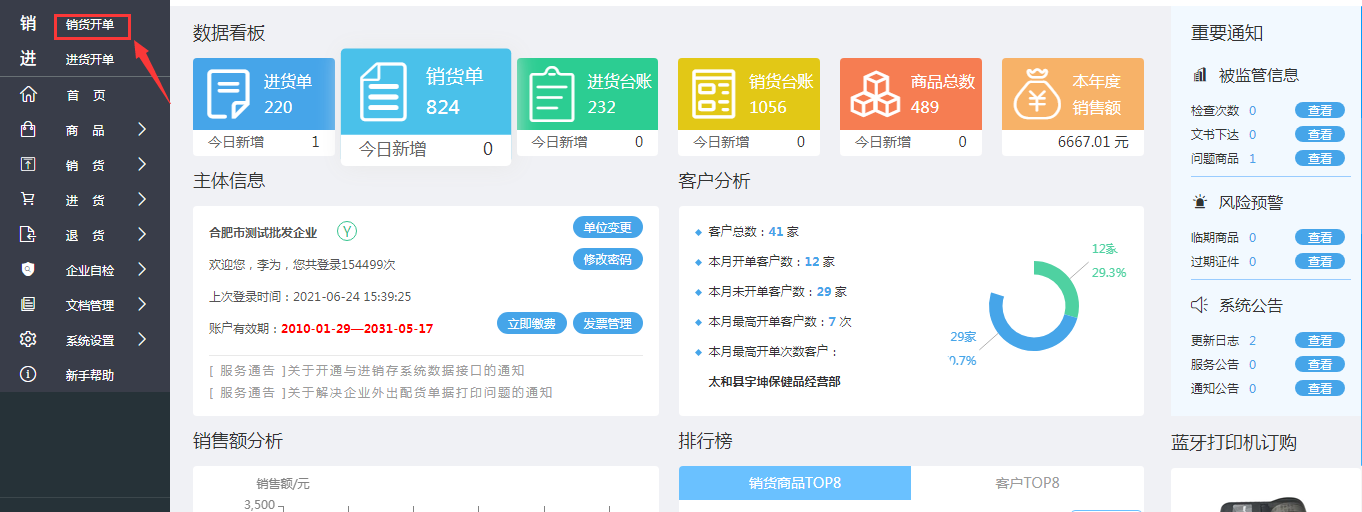 ①点击左侧功能区上方的“销货开单”和“进货开单”,可以直接进入开单页面,节约时间。