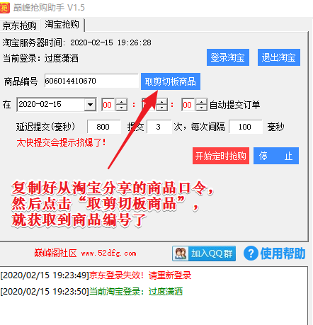 ## 方法2:复制淘宝商品口令,然后点击“取剪切板商品”,获取商品编号