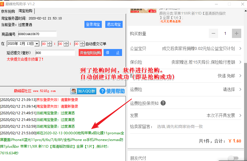 ## 到了抢购时间,软件进行抢购。