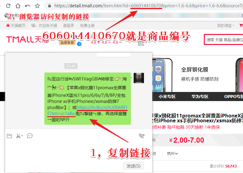 ## 方法1:浏览器访问所复制的链接,获取商品编号