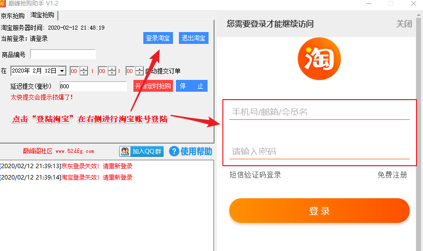 ## 登陆淘宝账号,设置抢购商品和时间