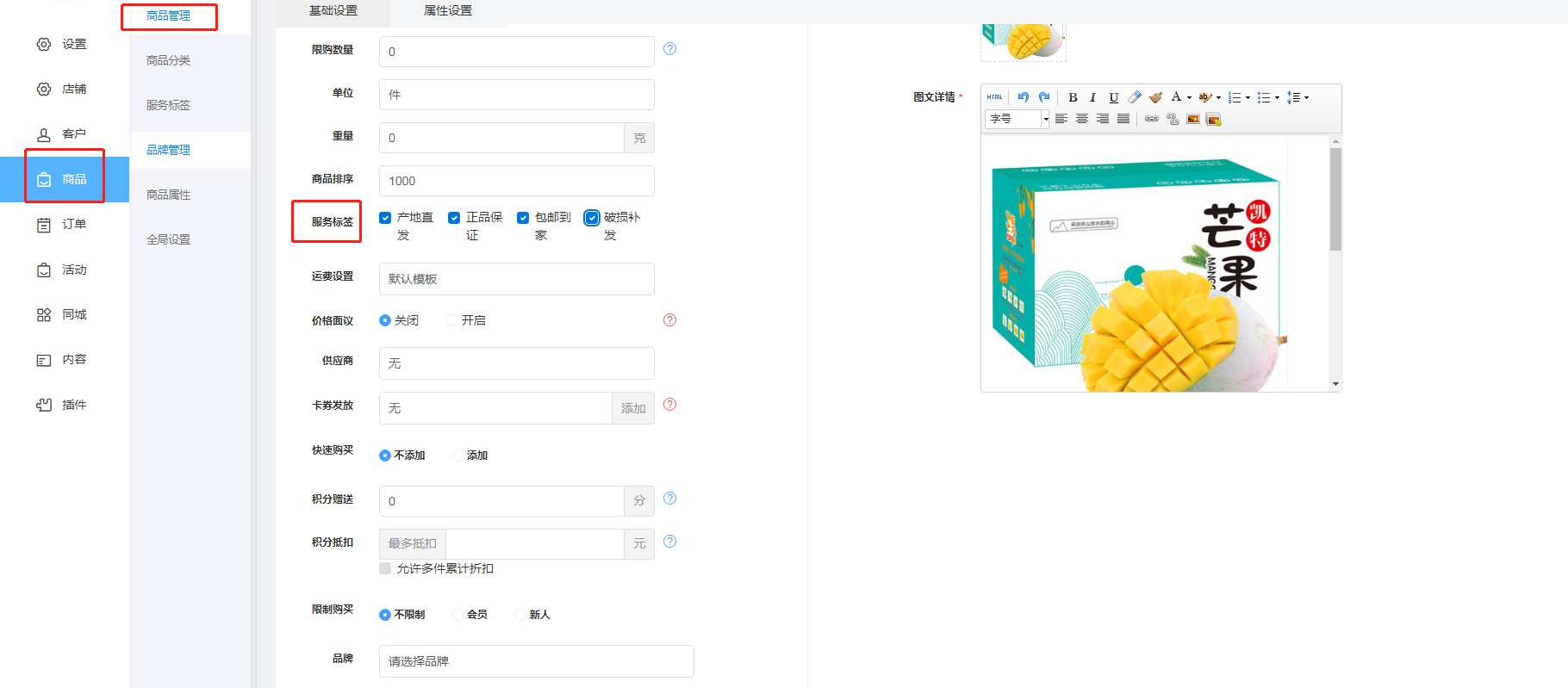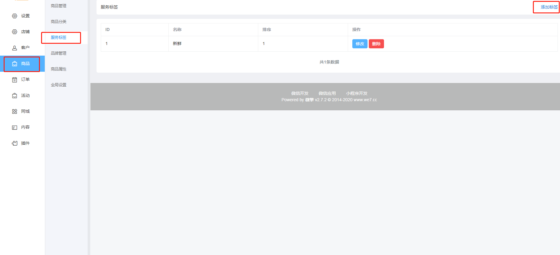 操作路径:后台-商品-服务标签-进行新增/编辑