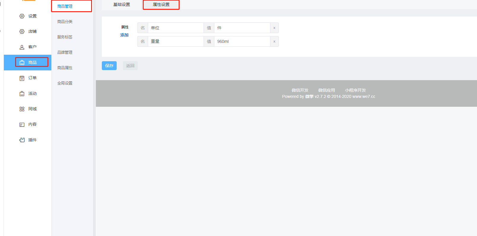 操作路径:后台-商品-商品属性-进行新增/编辑