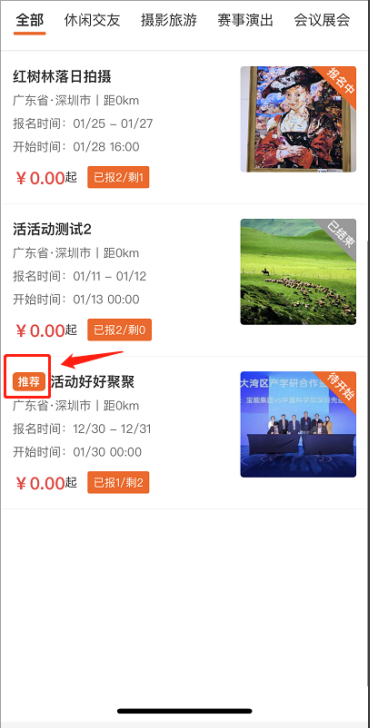 创建角标:主办方发活动可以选择角标,如活动可以加推荐,最新,热门等