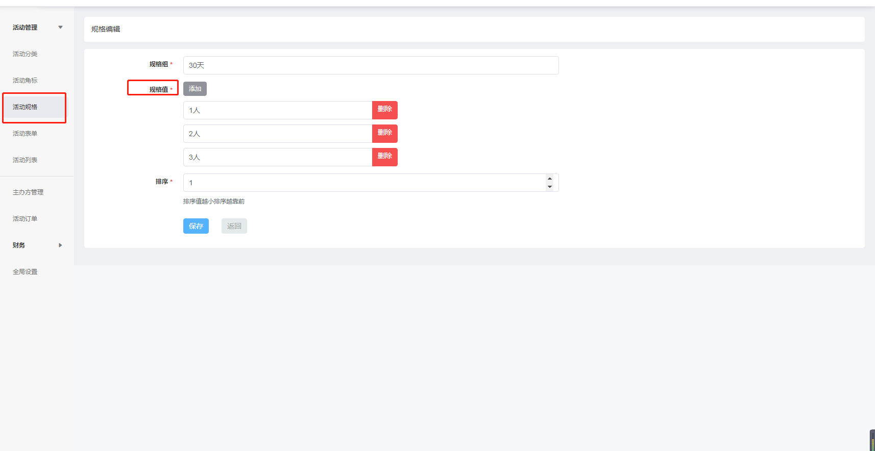 创建规格库:支持设置活动多个规格,编辑活动详情时直接从模板库中选取所需规格