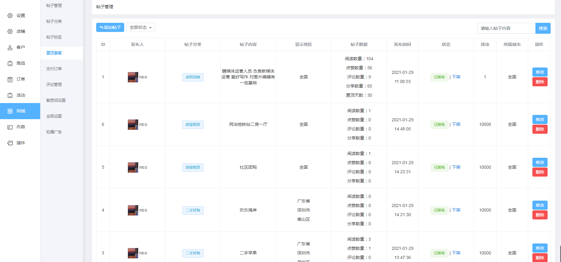 - 同城帖子
