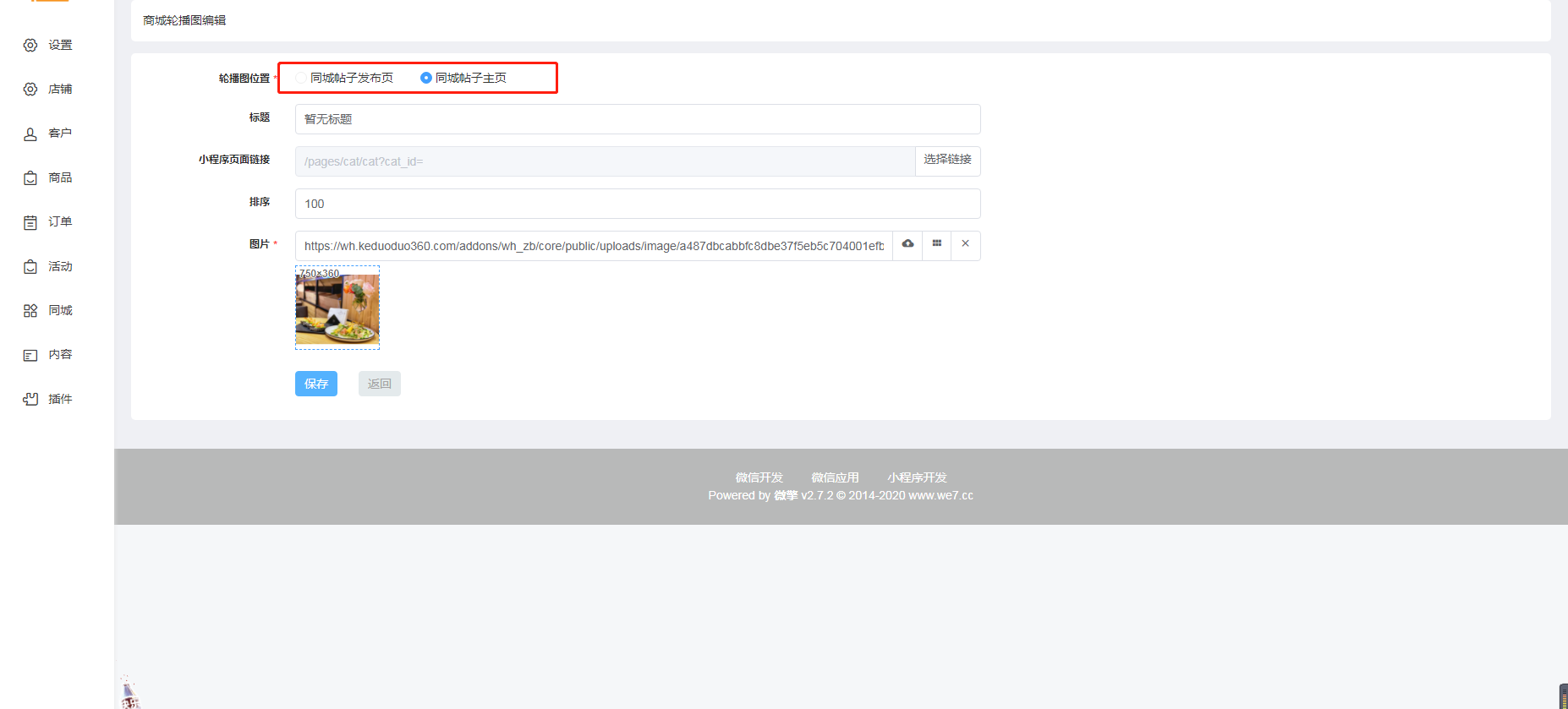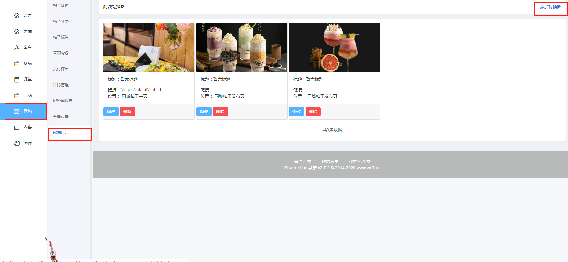 轮播图设置:自定义帖子主页轮播广告跟发帖页面轮播图可设置轮播图链接跳转页面