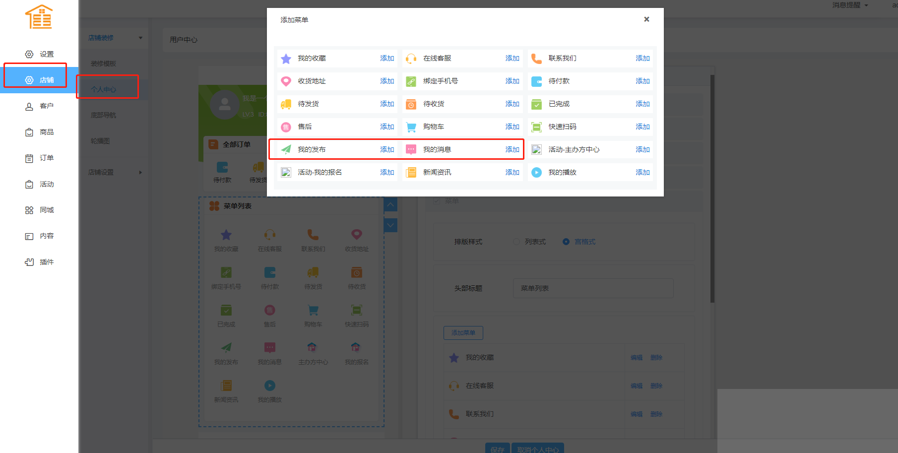 个人中心菜单