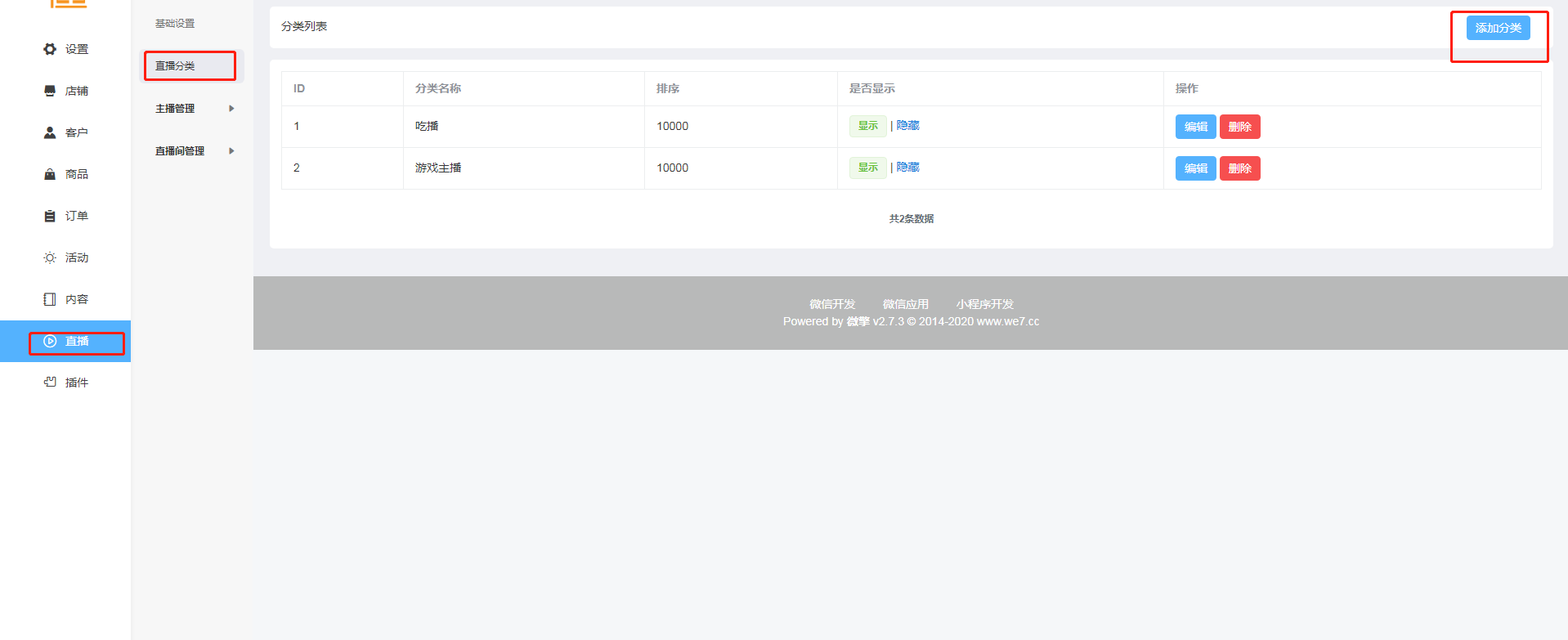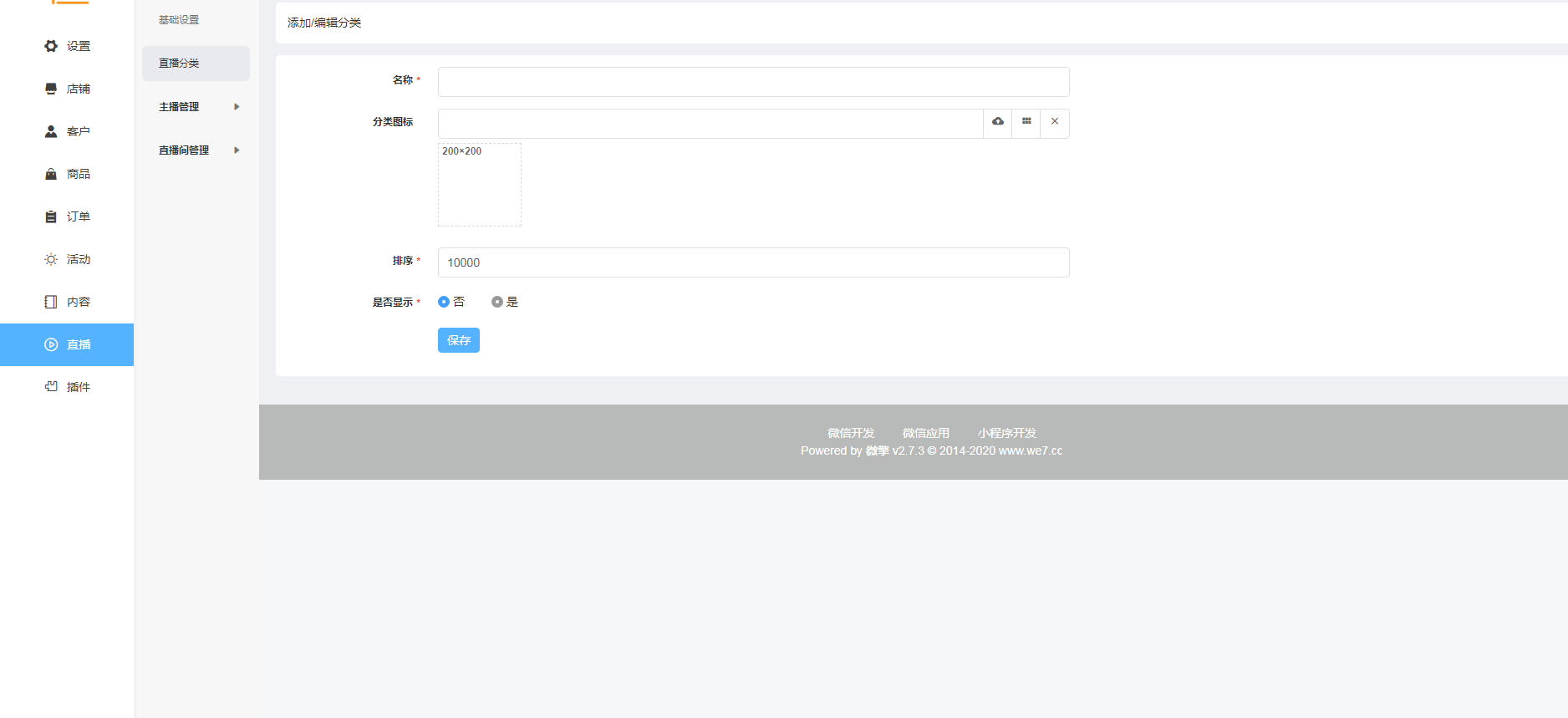 操作路径:后台-直播-直播分类-进行新增/编辑