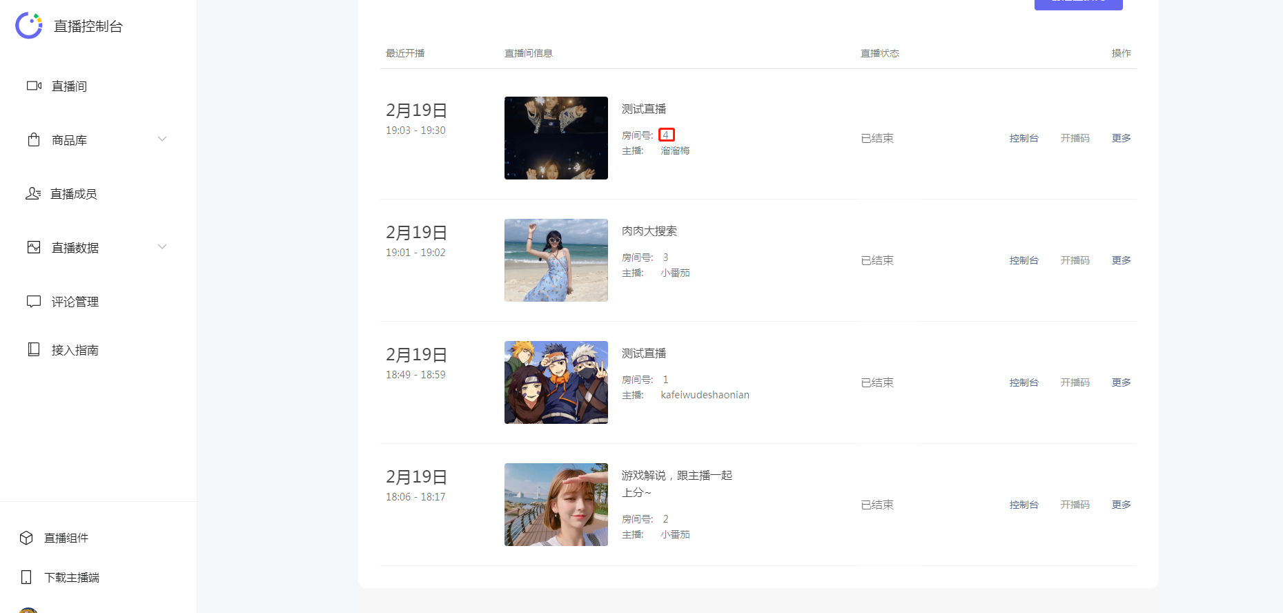 直播间列表: