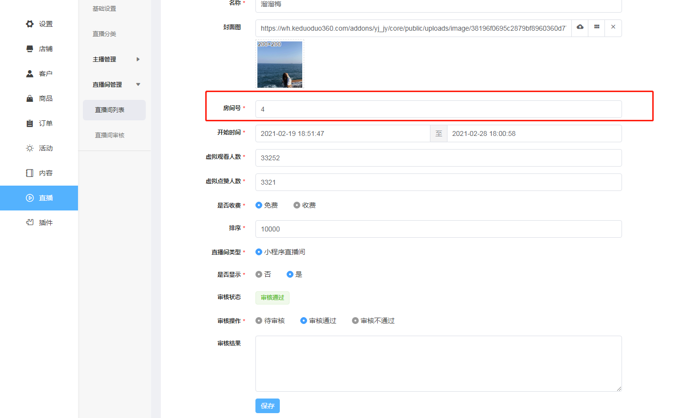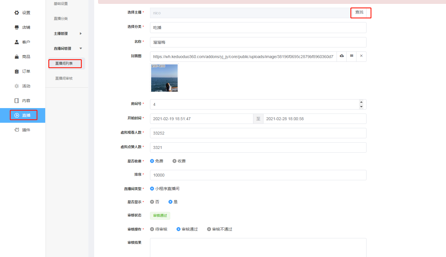 添加直播间:可以在后台直接添加直播间