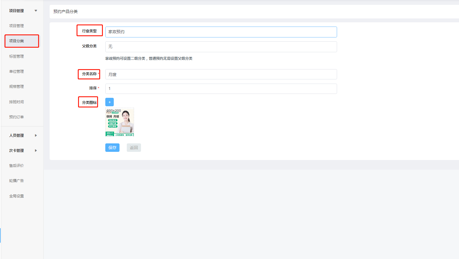 ### 二级分类显示:家政预约可设置二级分类,普通预约无需设置父级分类