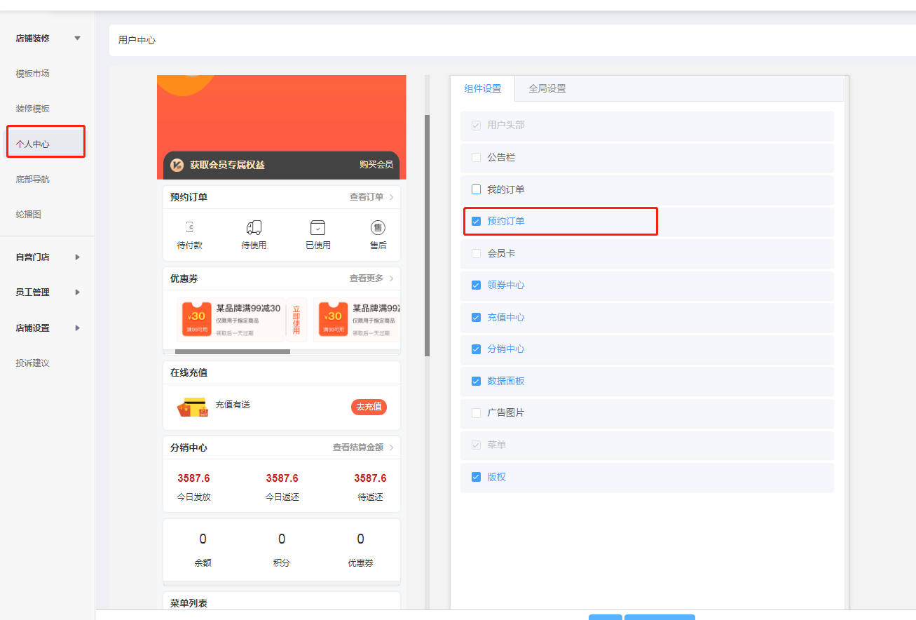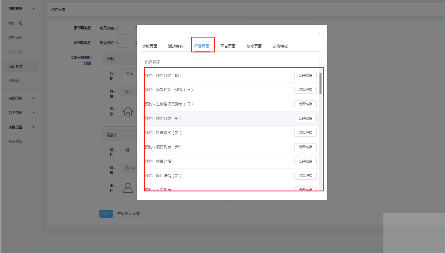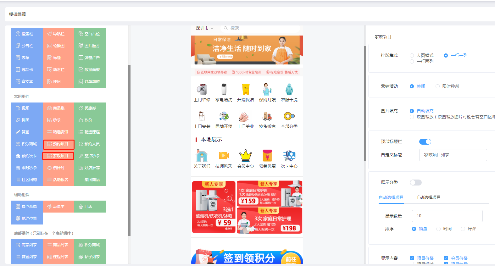 平台预约组件,用户可以通过该组件查看平台的预约;顶部可设置分类选择