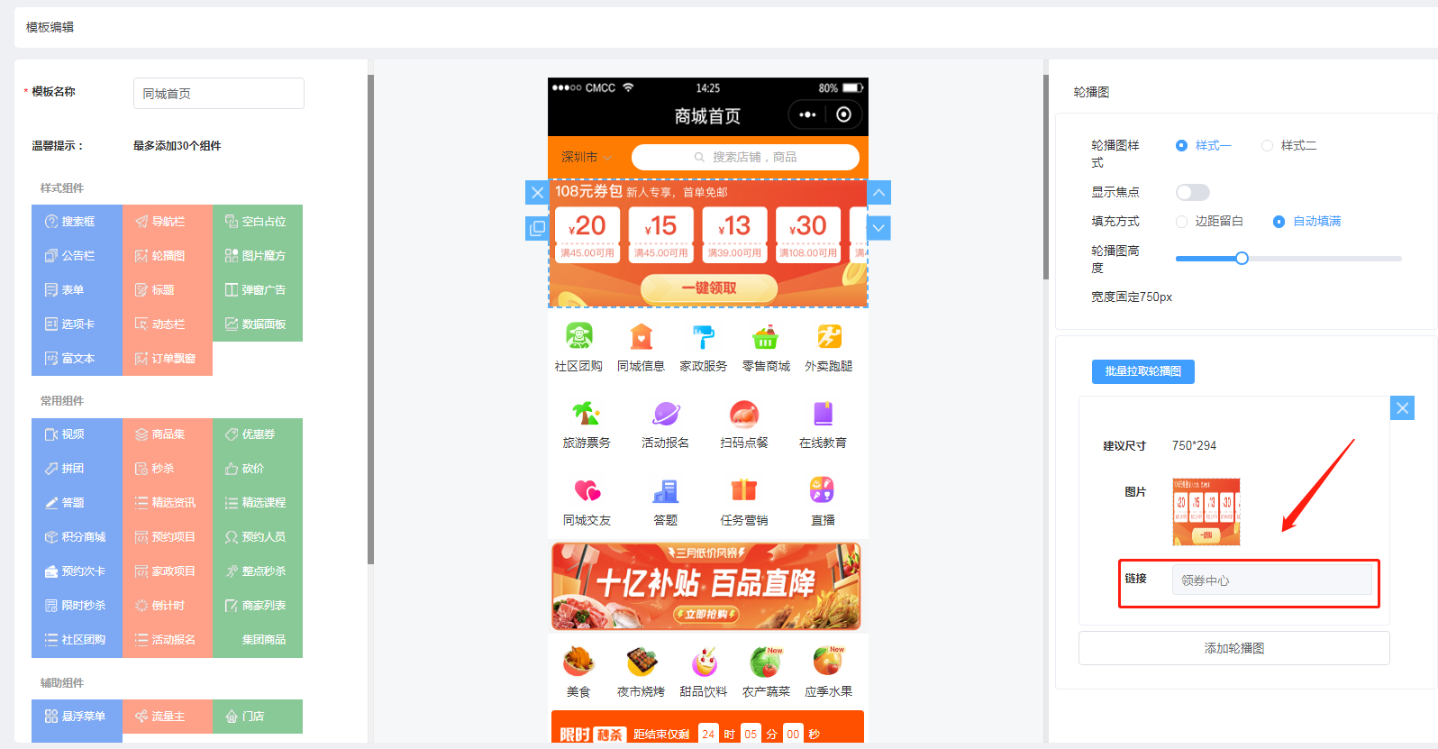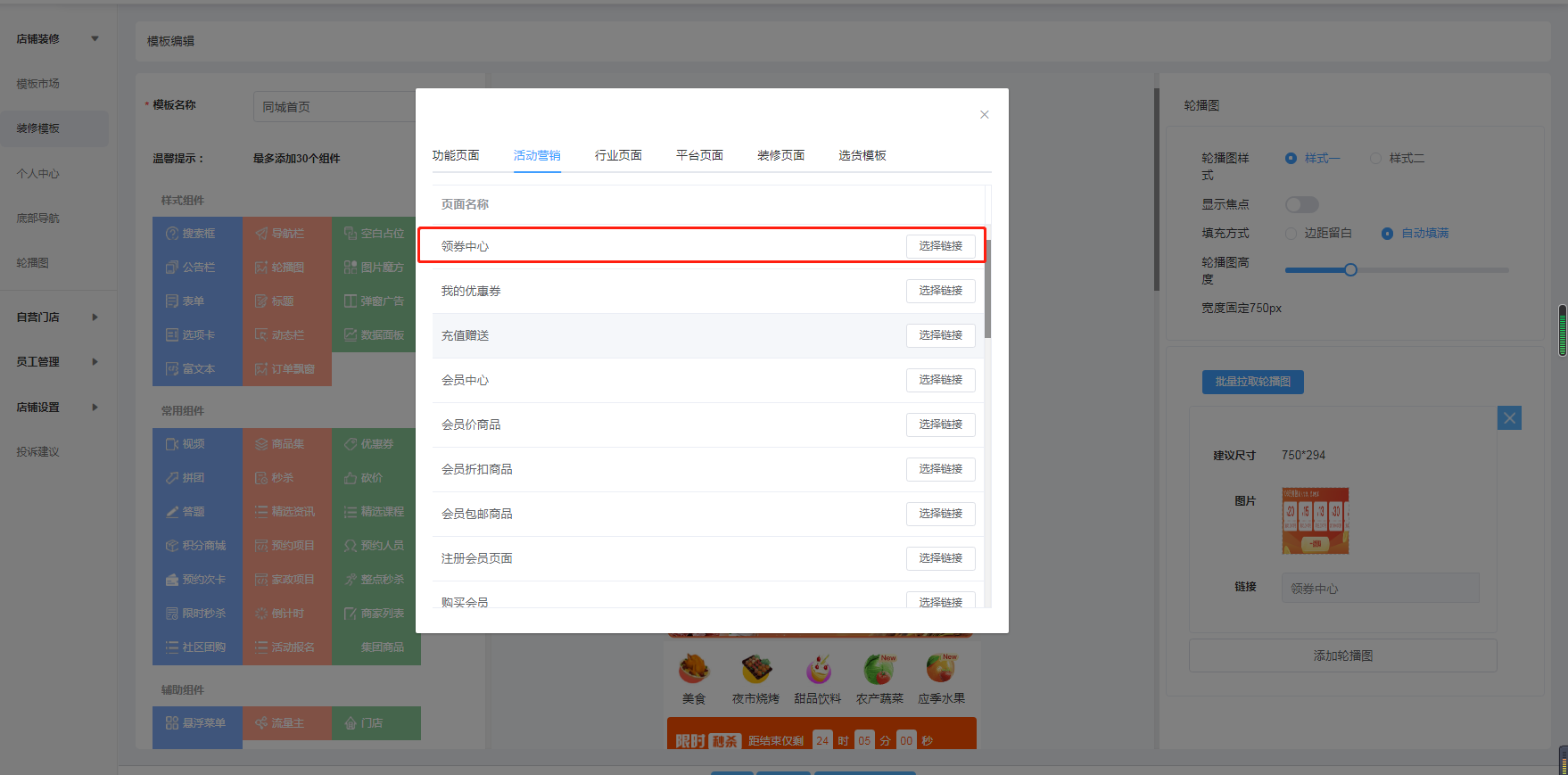 * 跳转路径—活动营销—领券中心(把优惠券设置加入领券中心,用户点击这个路径即可领券平台优惠券,)