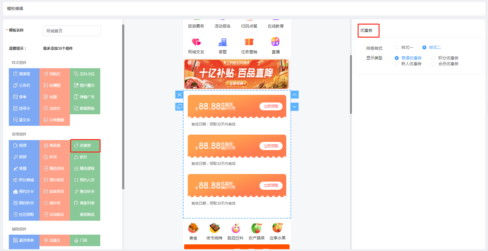 显示类型:可支持勾选显示普通优惠券/积分优惠券/新人优惠券/会员优惠券