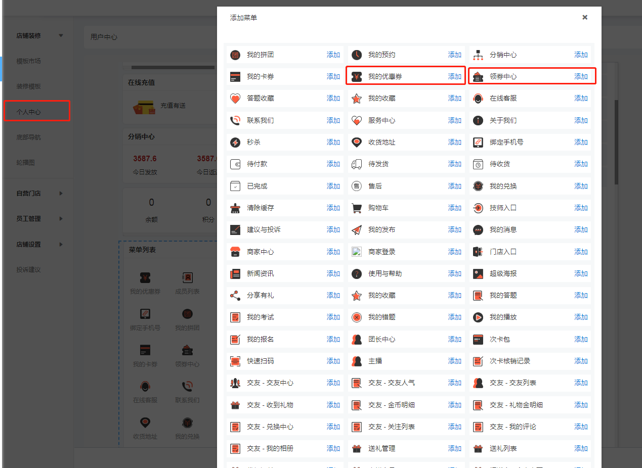 * 领券中心(把优惠券设置加入领券中心,用户点击这个路径即可领券平台优惠券,)