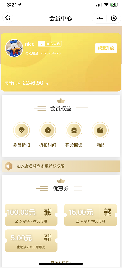 自营+多商家(用户升级到该会员等级购买自营商品和多商家商品都享受折扣)